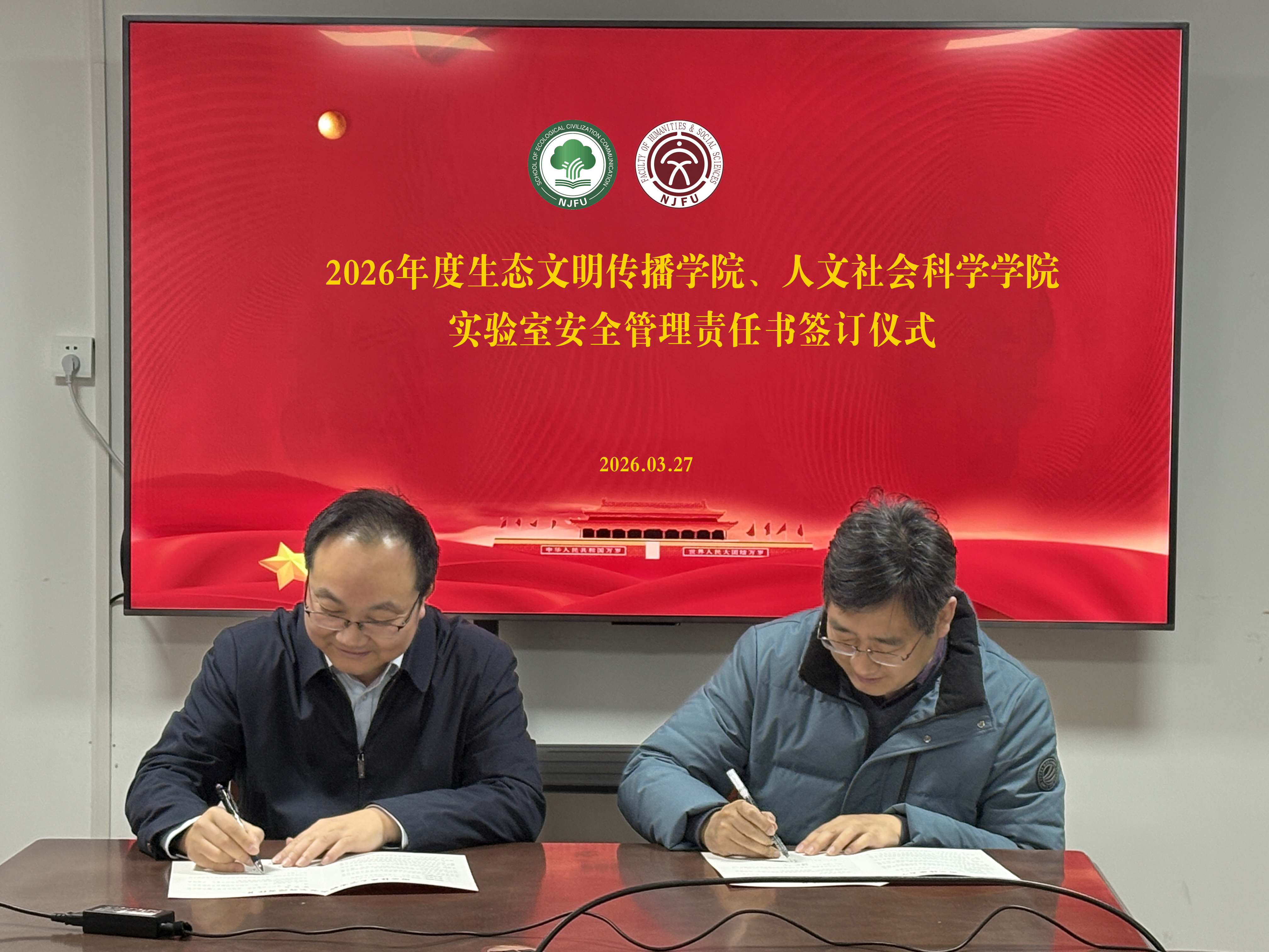 为深入推进“党建引领高质量发展”专项行动,搭建党建合作与协同育人新平台,2026年1月27日下午,人文社会科学学院、生态文明传播学院与南通开放大学举行党建共建签约仪式。人文社会科学学院(生态文明传播学院)党委书记卫欣与南通开放大学党委书...