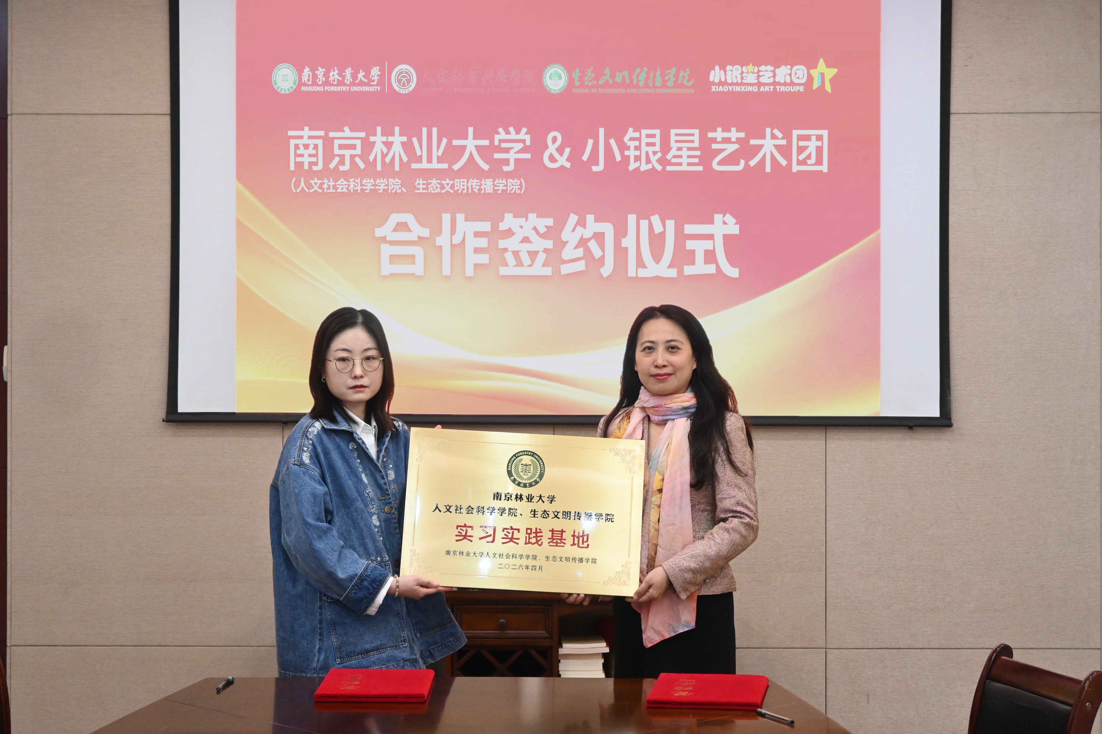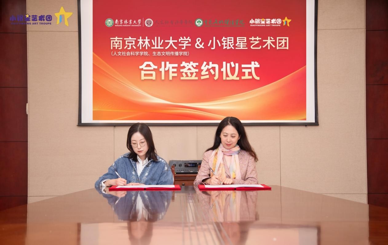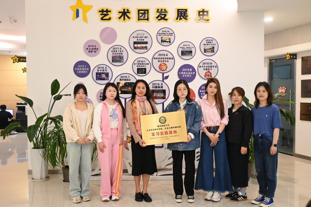 4月10日下午,南京林业大学人文社会科学学院、生态文明传播学院党委副书记、副院长王瑾带队,与辅导员王丽媛、徐爽爽一行前往南京小银星艺术团,开展实地走访交流,并隆重举行实习实践基地签约暨授牌仪式。